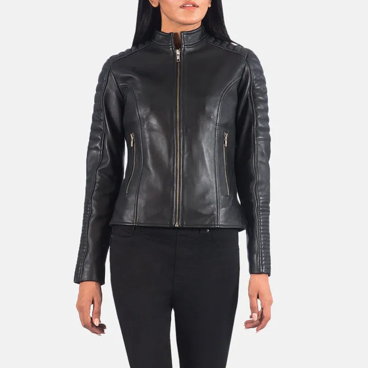 Be the first to review “Adalyn Quilted Black Leather Biker Jacket”