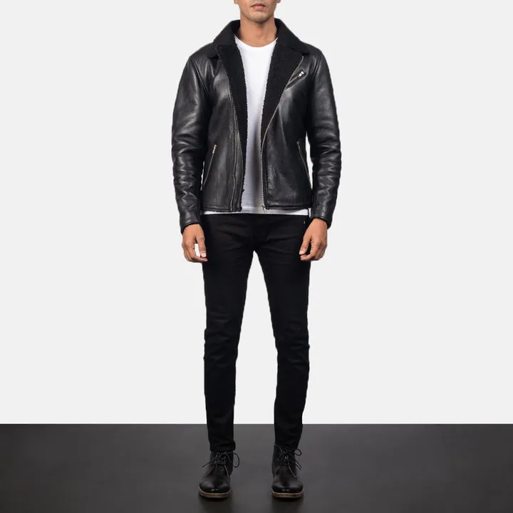Alberto Shearling Black Leather Jacket