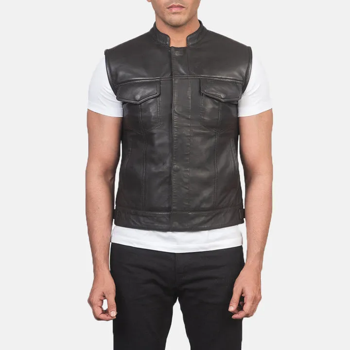 The Atlas Moto Black Leather Vest delivers bold biker attitude with a sleek, rugged, and powerful moto-inspired design.