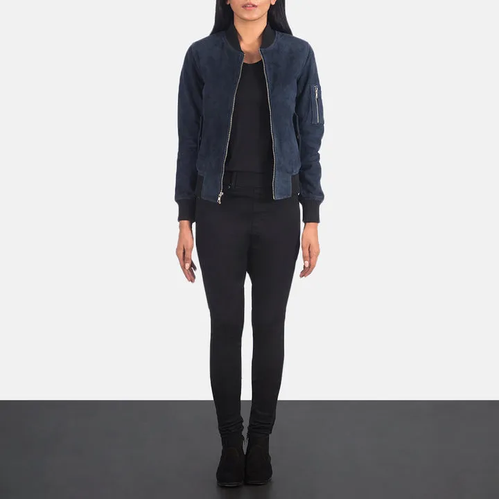 Ava Ma-1 Blue Suede Bomber Jacket
