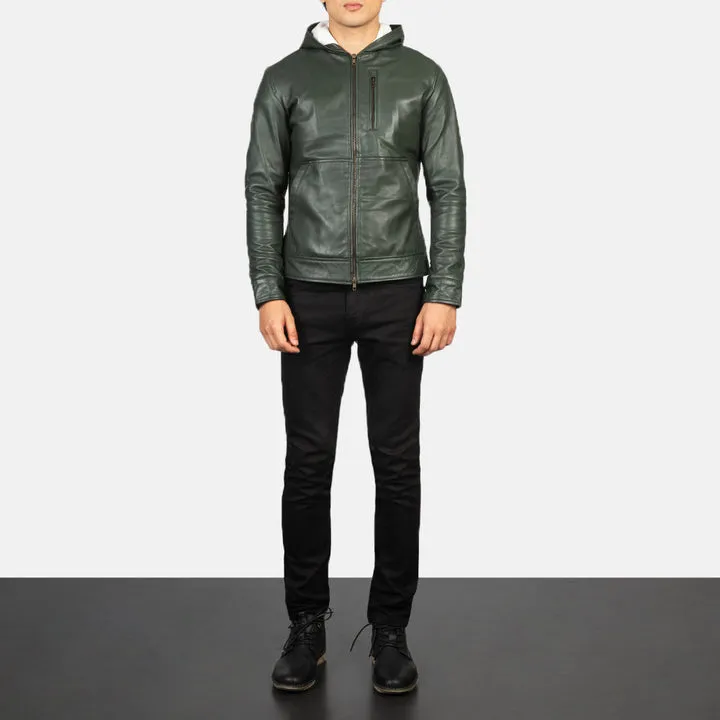 Be the first to review “Baston Green Hooded Leather Bomber Jacket”
