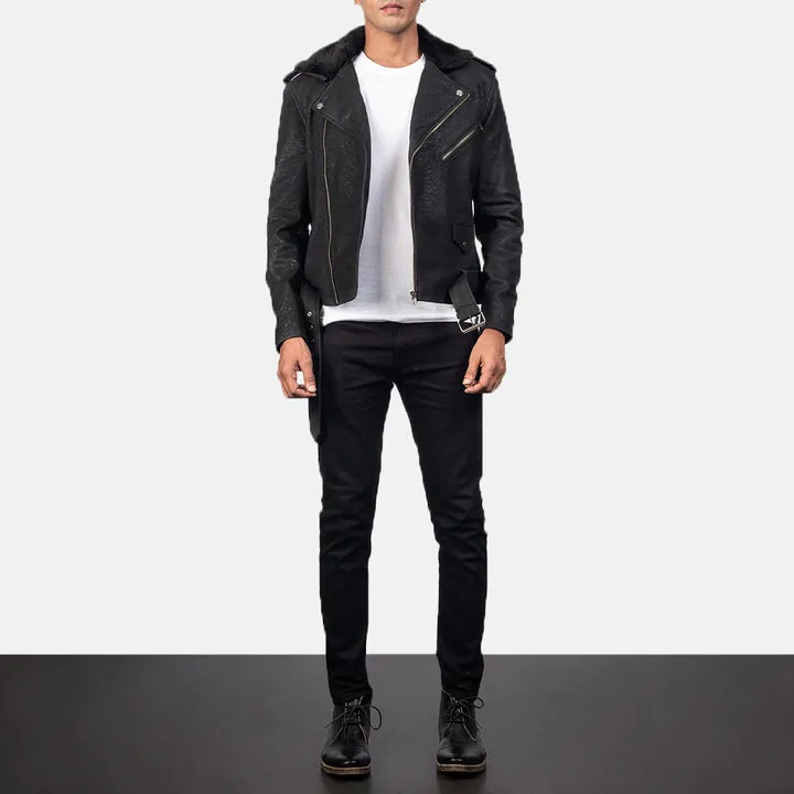 The Furton Distressed Black Leather Biker Jacket redefines rebellion with genuine leather, hand-finished distressing, and classic biker hardware. Rugged, authentic, and built to tell your story.