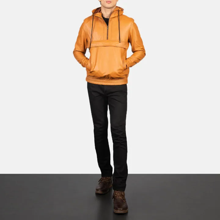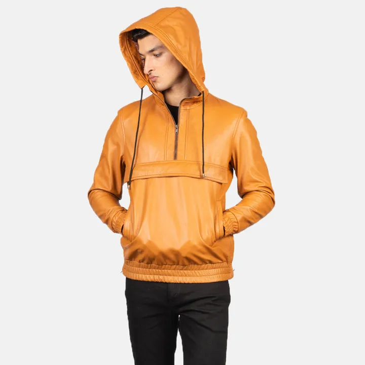 Kenton Hooded Brown Leather Pullover Jacket