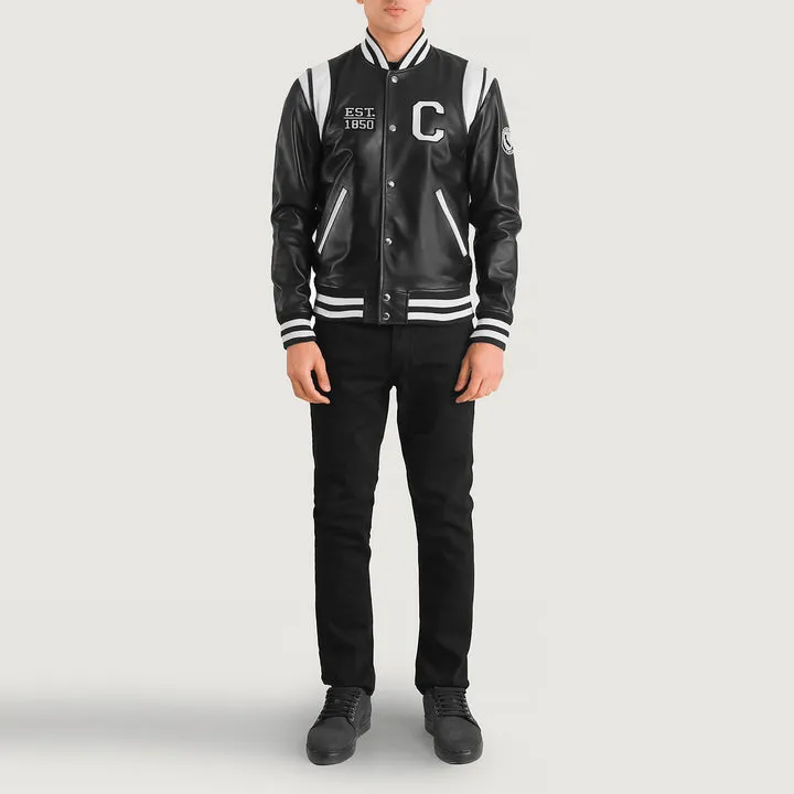 Inspired by 1950s American letterman jackets but reimagined for today’s style, the Liberte California Black Leather Varsity Jacket blends rugged nostalgia with contemporary craftsmanship. It features a premium genuine black leather body paired with contrasting wool-blend sleeves, ribbed collar and cuffs, and signature varsity details — including an embroidered “California” patch. This isn’t just a jacket — it’s a tribute to timeless American cool.