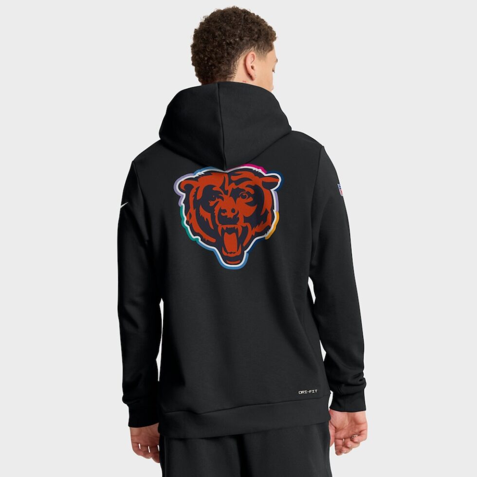 Men’s Nike Black Chicago Bears Tall 2025 NFL Crucial Catch Sideline Standard Issue Dri-FIT Hoodie