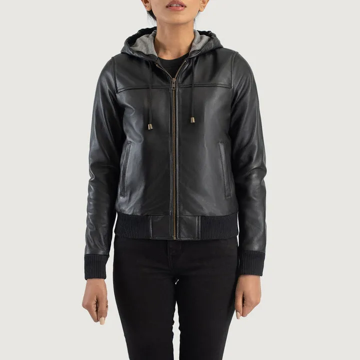 The jacket features a classic bomber silhouette with Rib Knit Cuffs and a matching hem to trap body heat. The attached Hood adds an extra layer of protection against wind and rain, making this Women’s Hooded Leather Jacket a practical choice for winter days.