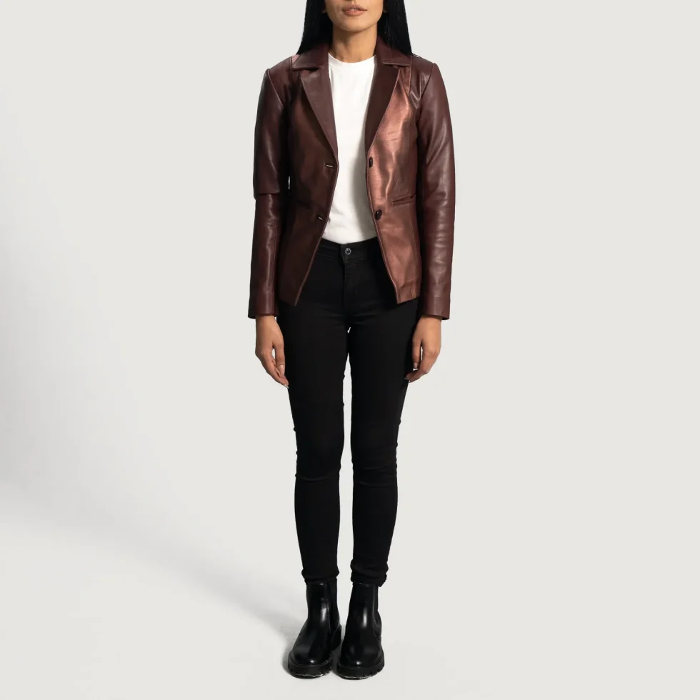 Be the first to review “Ruby Metallic Maroon Leather Blazer”