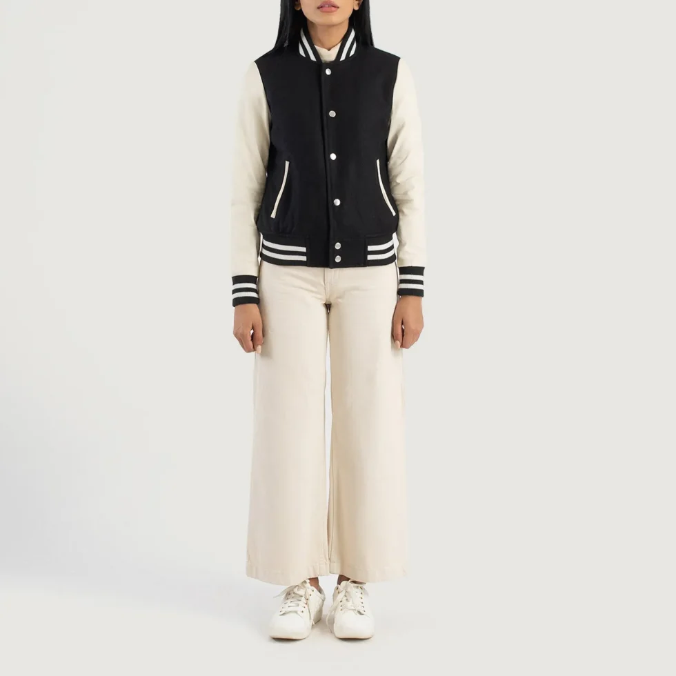 Be the first to review “Savant Black & White Hybrid Varsity Jacket”