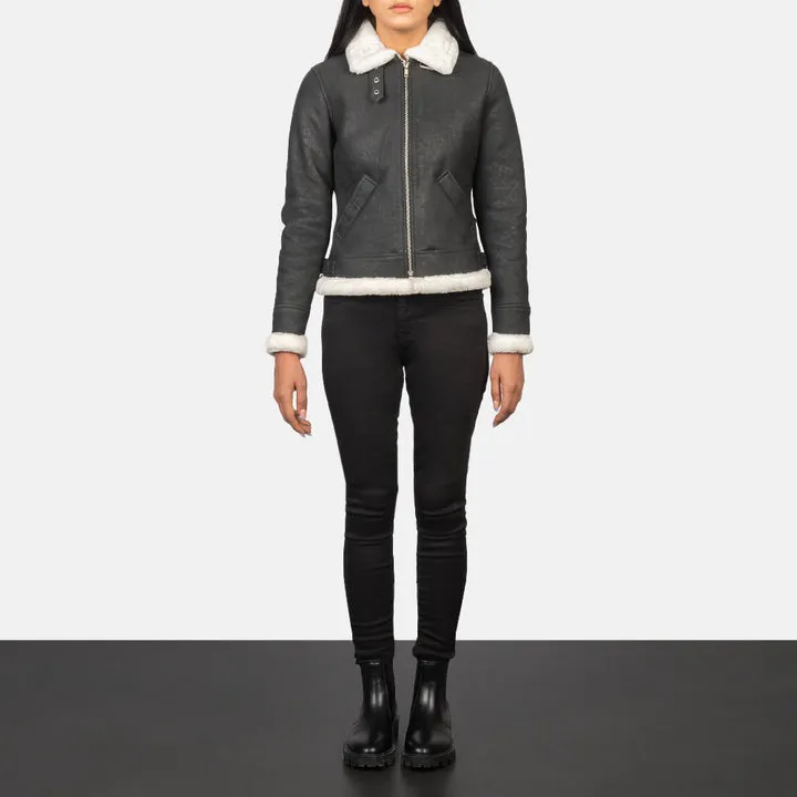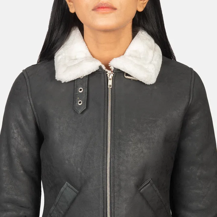 Sherilyn B-3 Black & White Leather Bomber Jacket