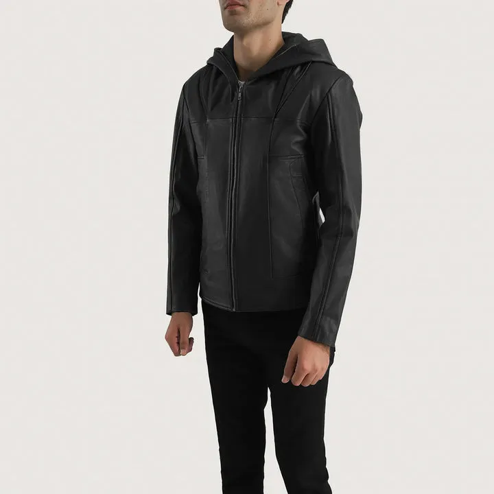 Be the first to review “Spratt Black Hooded Leather Jacket”