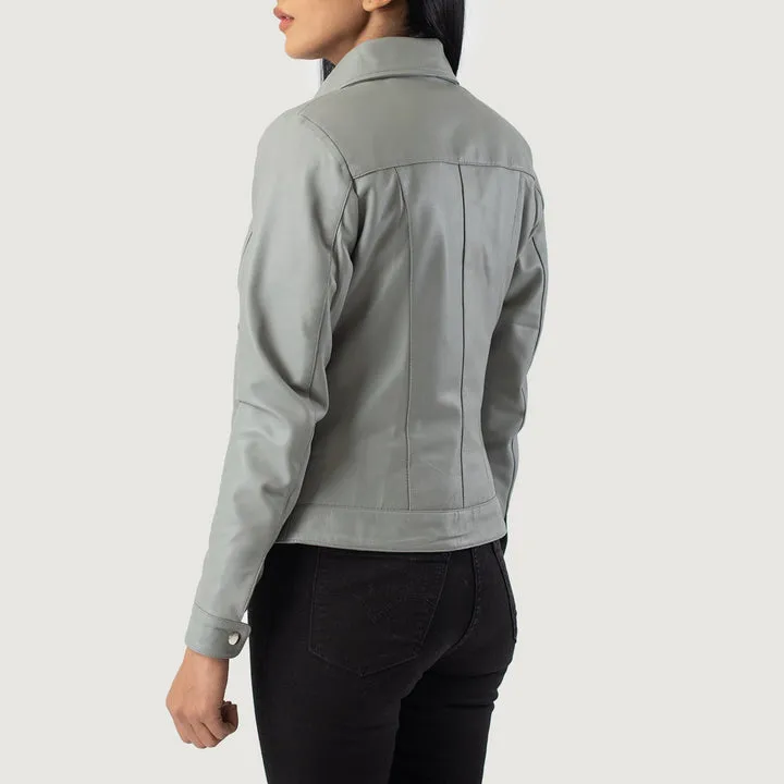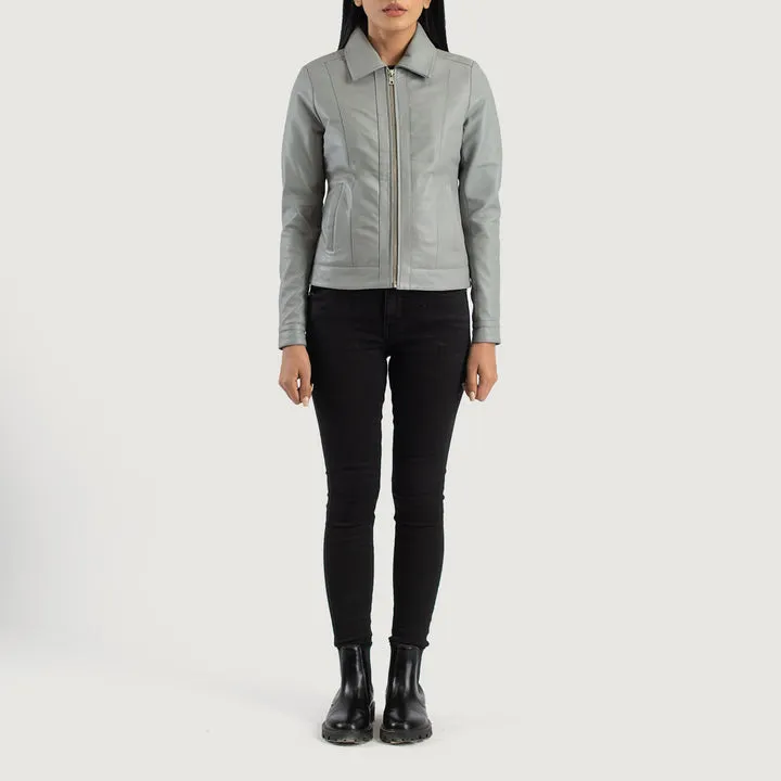 The Vixen Grey Classic Collar Leather Jacket offers timeless elegance with its sleek grey finish, tailored fit, and refined collar design.