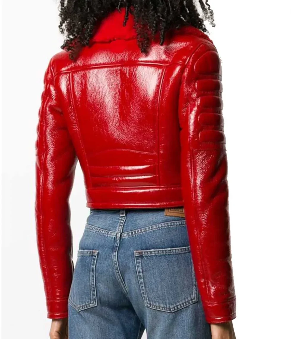 Women’s Asymmetrical Lainey Red Shearling Leather Jacket